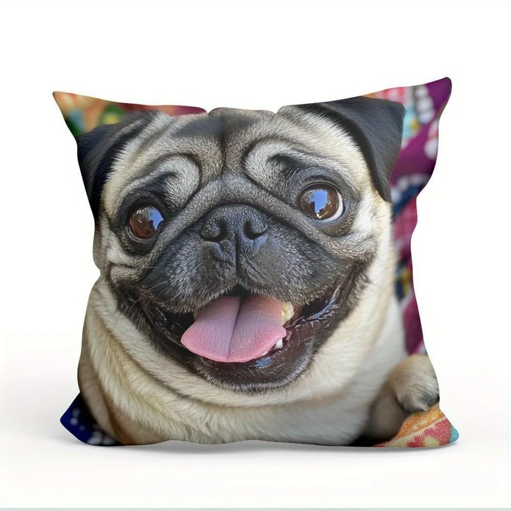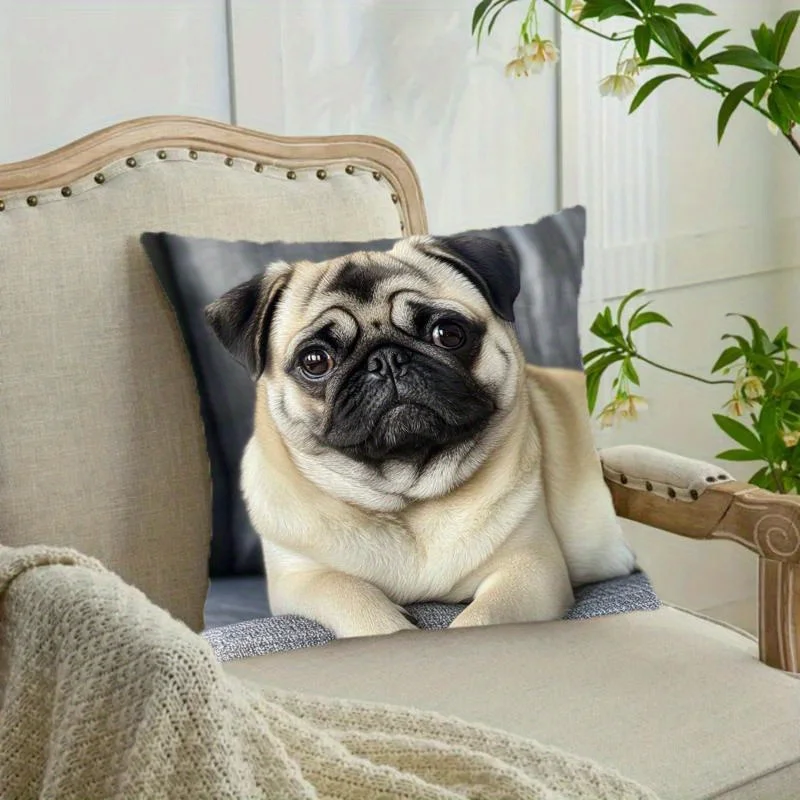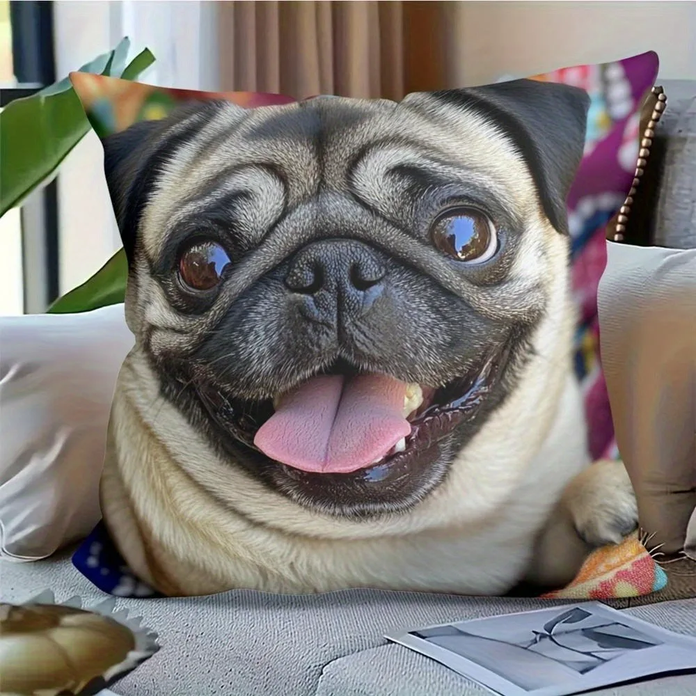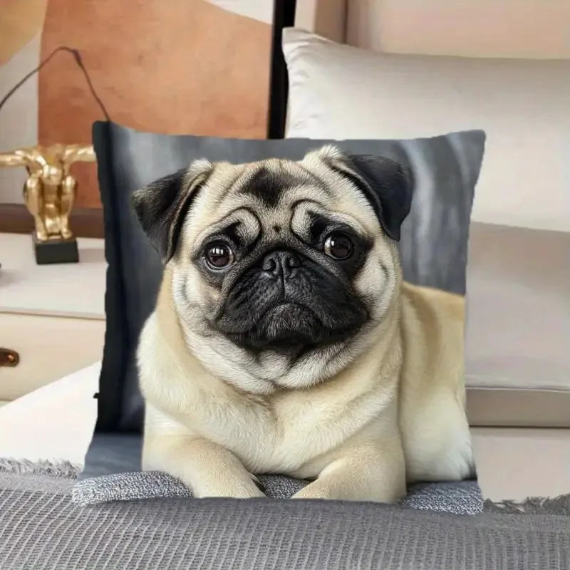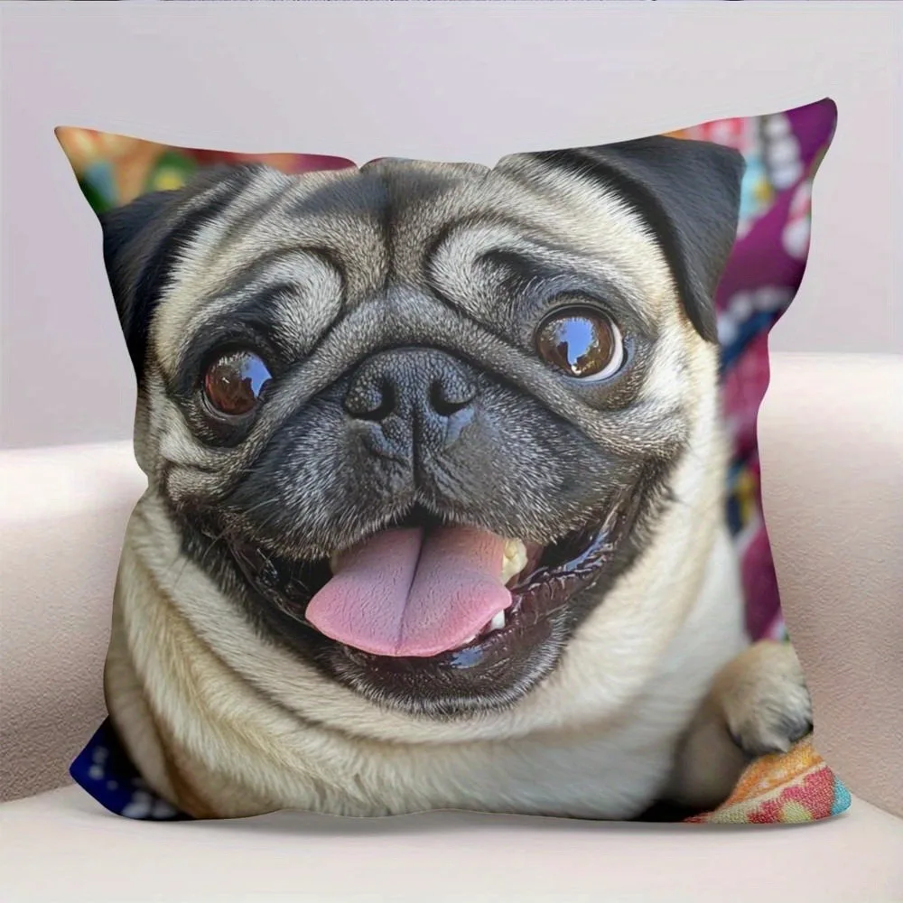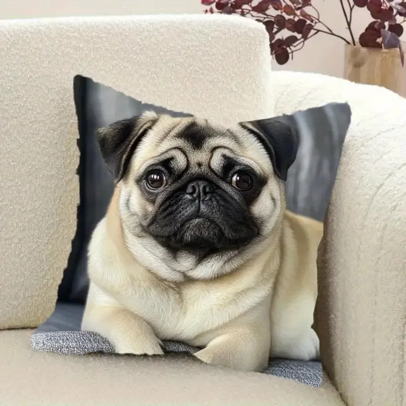 1pc Cute Pug Throw Pillow Cover Decorative 45x45cm Square Cushion Case for Living Room Office Pet Lover Home Decor Pillow Cases