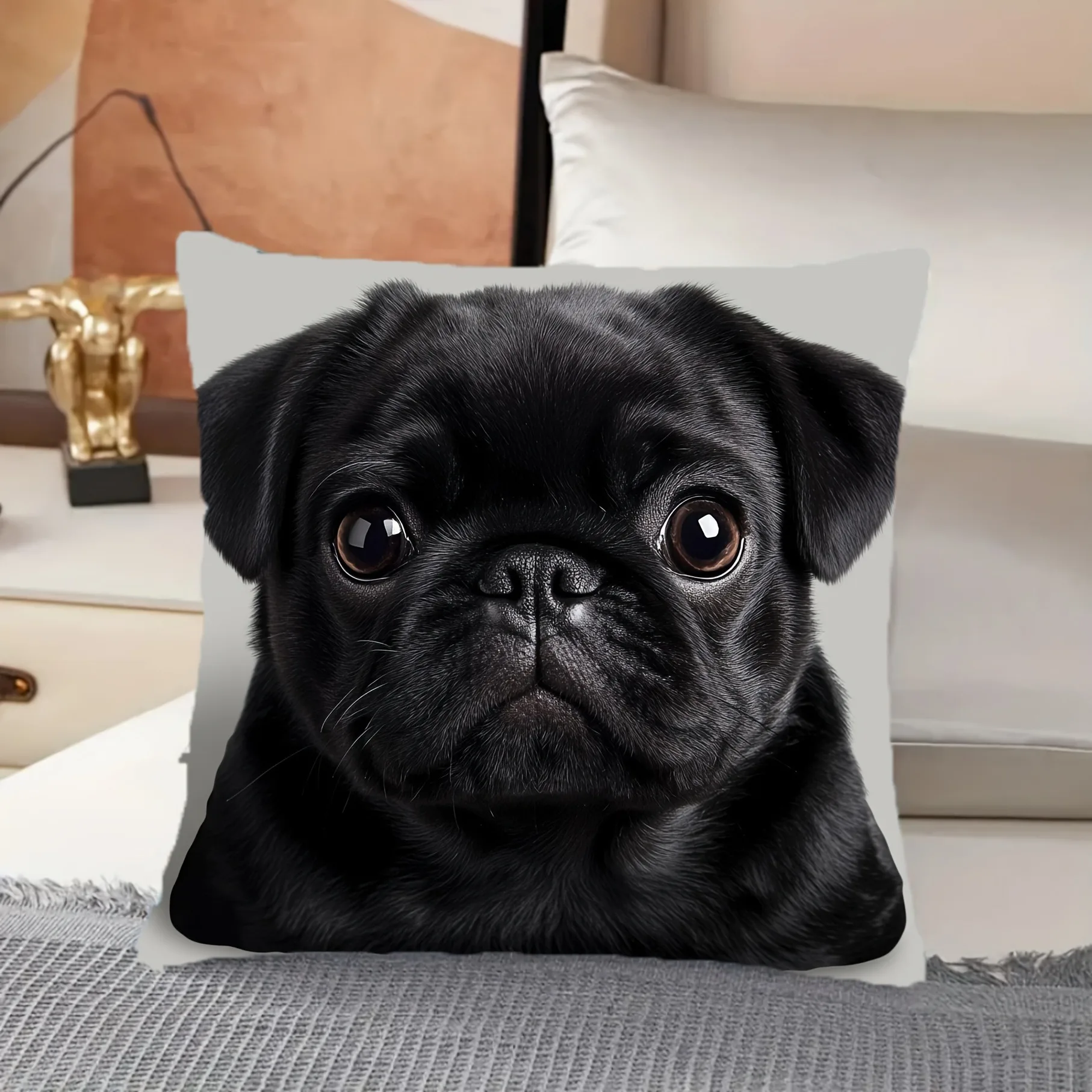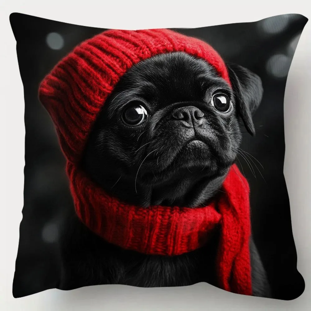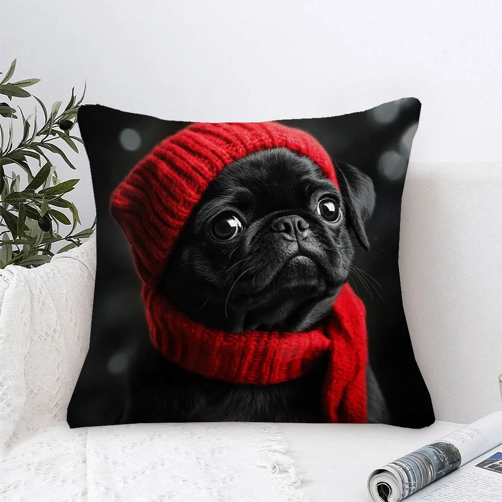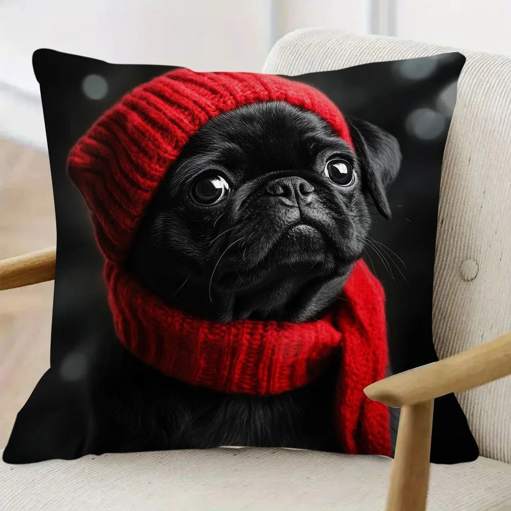 1pc Cute Pug Throw Pillow Cover Decorative 45x45cm Square Cushion Case for Living Room Office Pet Lover Home Decor Pillow Cases