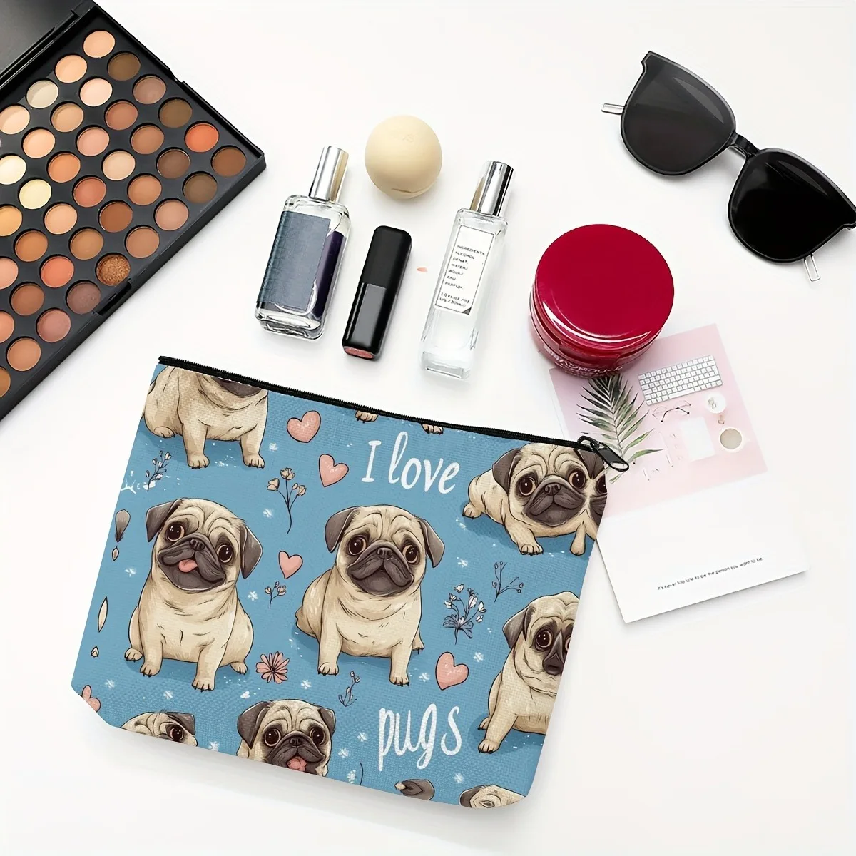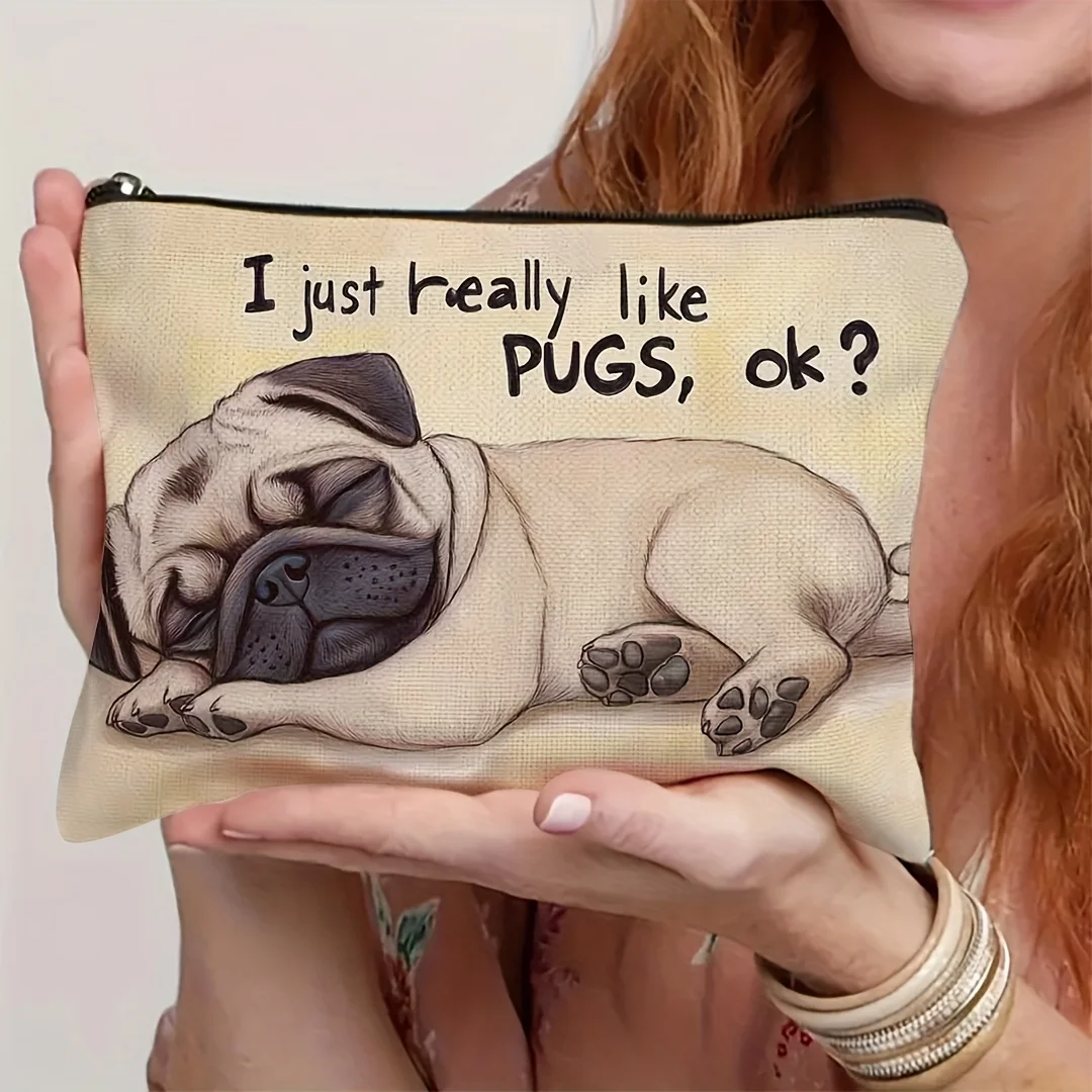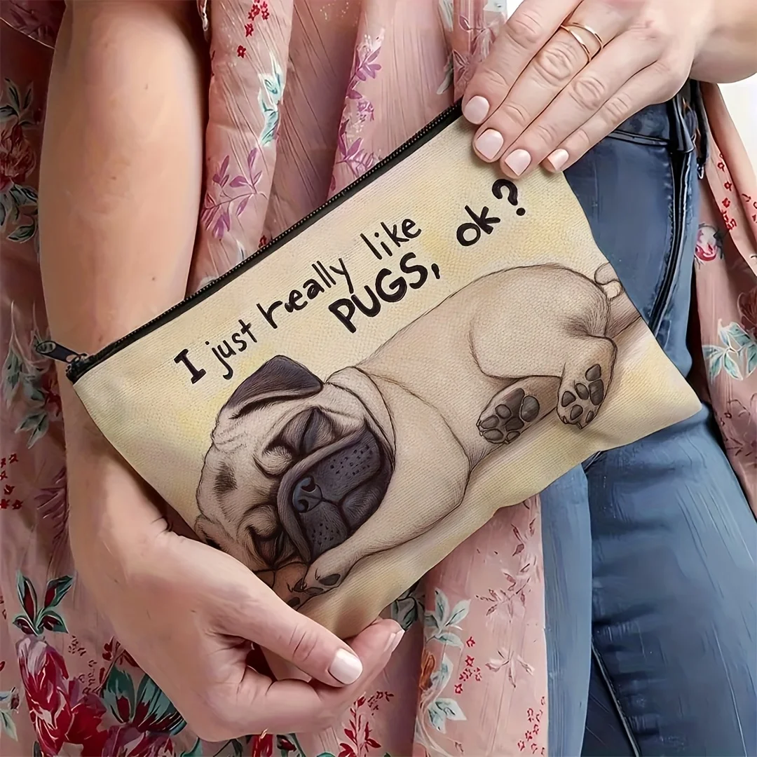 Hot Pug Cartoon Dog Makeup Bag Just A Girl Who Loves Cosmetic Storage Bag Aesthetic Accessory Bags Portable Toiletry Pencil Case