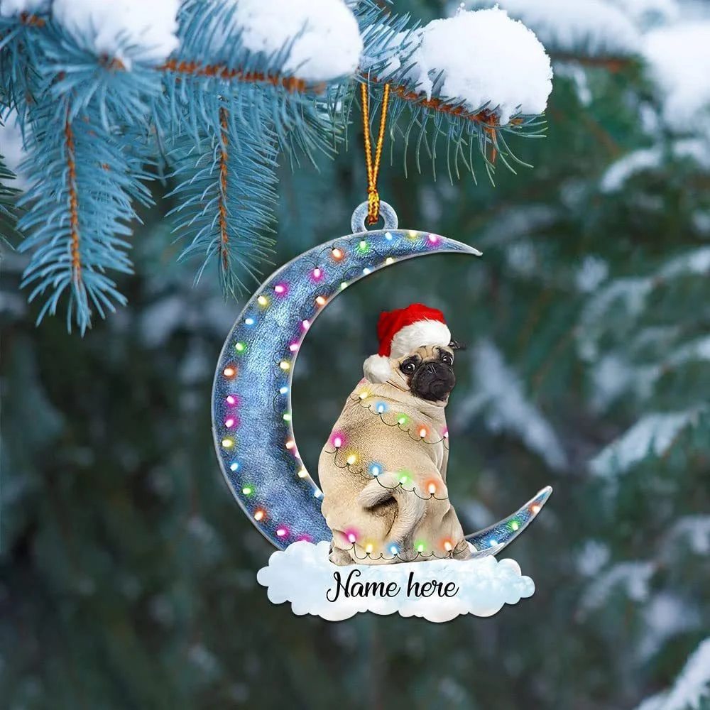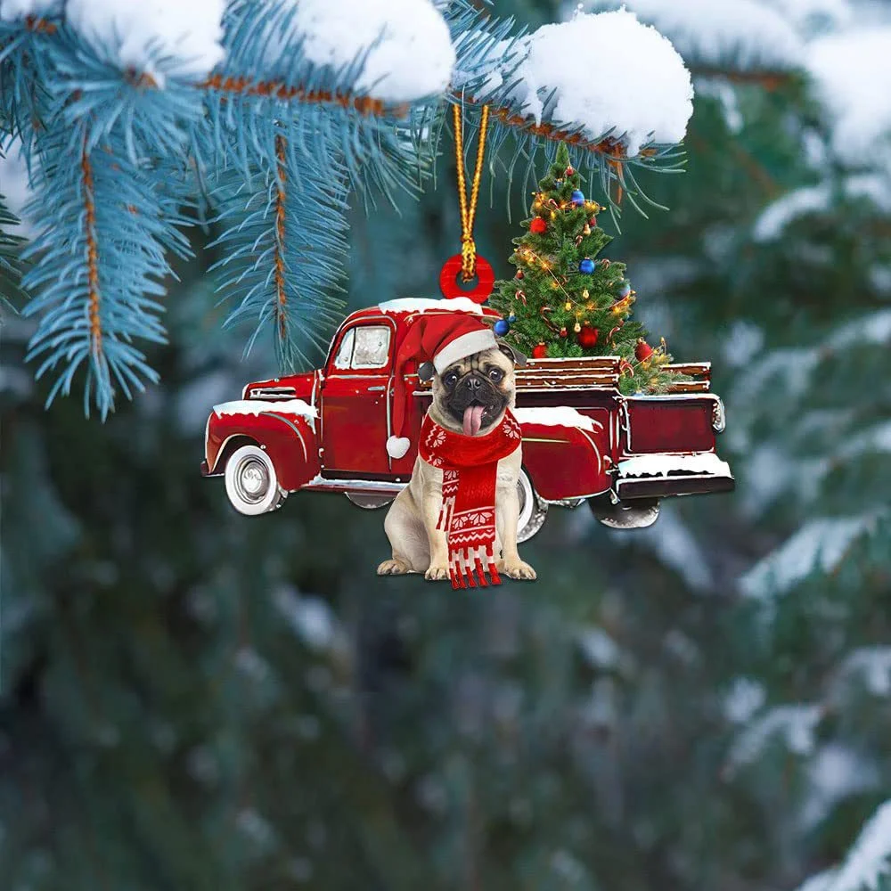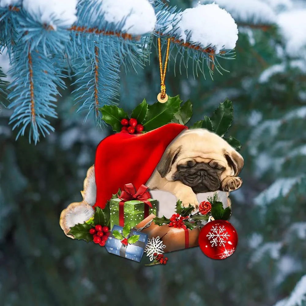 Sleeping Pug Dog Christmas Tree Car Accessories Decoration Hanging Pendants Xmas Tree Decor New Year 2026 Navidad DecoracióN