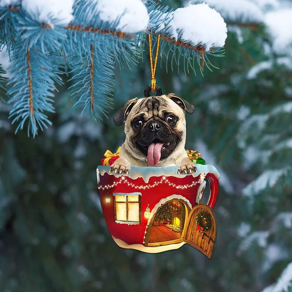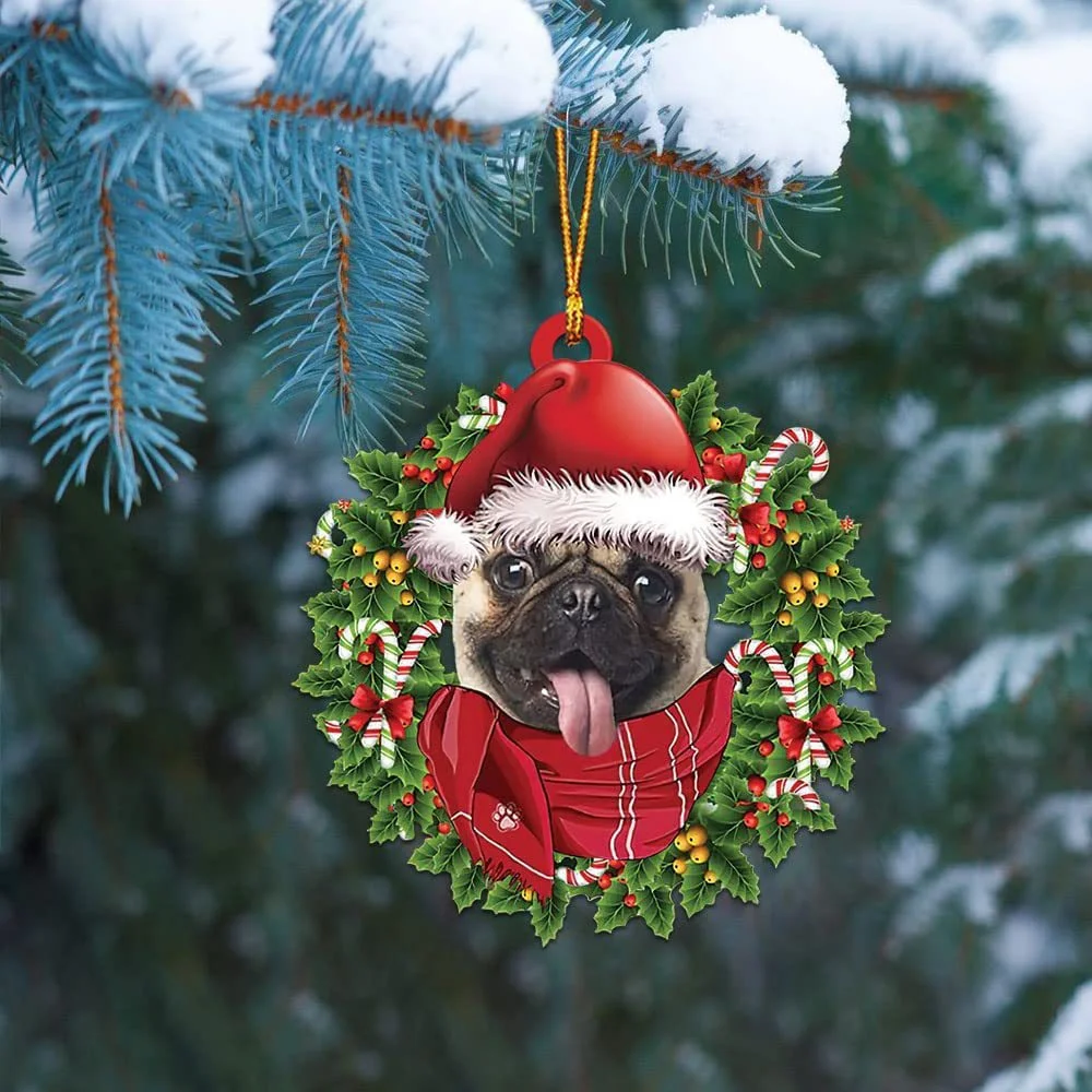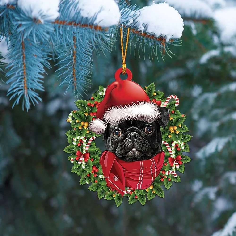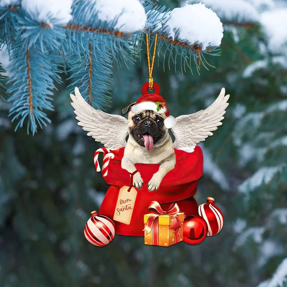Pug Christmas Tree Ornament 2026 – Cute Angel Pug Hanging Decoration for Xmas Tree & Car | Festive Holiday Pendant Gift